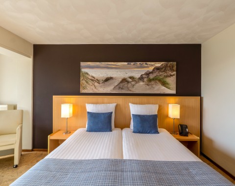 Standardzimmer Ca. 16 bis 23 m² 2 Einzelbetten Terrasse mit Sitzmöglichkeit Sitzbereich mit Fernseher Geeignet für Personen mit guter Mobilität. 52,50 p.P. Weitere Informationen Balkonzimmer Ca. 13 bis 20 m² 2 Einzelbetten Balkon mit Sitzmöglichkeit Sitzbereich mit Fernseher Geeignet für Personen mit guter Mobilität. 62,50 p.P. Weitere Informationen Meerblickzimmer Ca. 16 bis 17 m² 2 Einzelbetten Balkon mit Meerblick Komfortable Sitzecke Geeignet für Personen mit guter Mobilität. 72,50 p.P. Weitere Informationen Dreibettzimmer Ca. 29 m² 3 Betten Komfortable Sitzecke Fernseher, Kühlschrank und Safe Geeignet für Personen mit guter Mobilität. 52,50 p.P. Weitere Informationen 4-Pers.-Suite / Familienzimmer 2 Schlafzimmer und ein Badezimmer Geräumiges Wohnzimmer Panoramablick Geeignet für Personen mit guter Mobilität. 255,00 p. N. Weitere Informationen Budgetzimmer Ca. 14 bis 28 m² 2 Einzelbetten Komfortable Sitzecke Fernseher, Kühlschrank und Safe Geeignet für Personen mit guter Mobilität. 47,50 p.P. Weitere Informationen